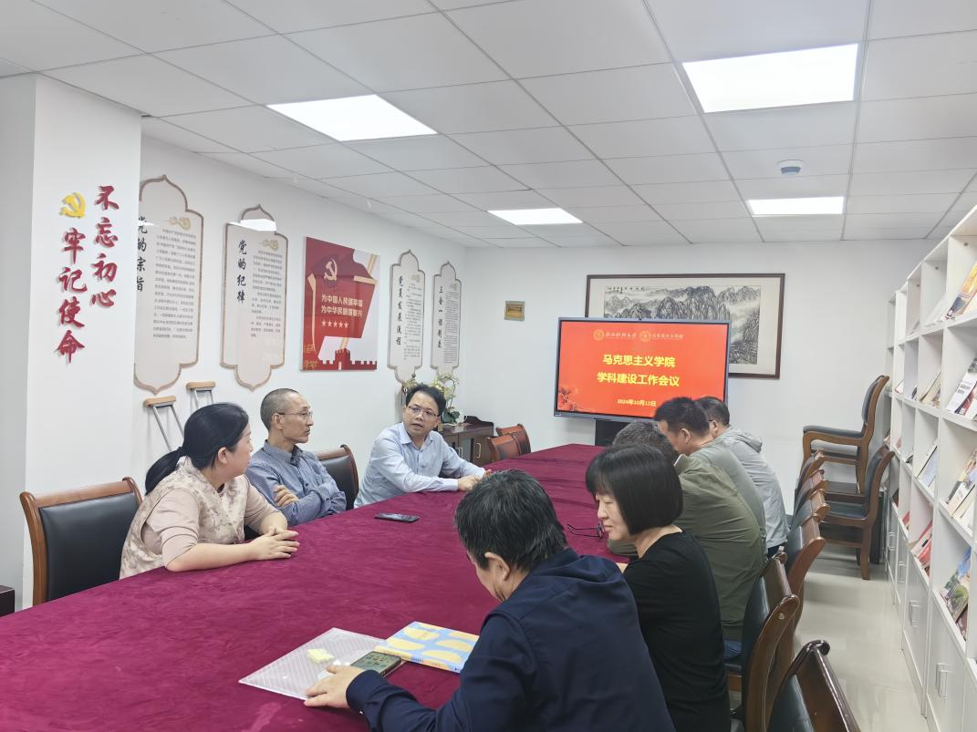 2024-10-14近日,学院召开学科建设工作会议,马克思主义理论(校级重点建设学科A)、哲学(校级重点建设学科B)骨干成员、学院班子成员与会,会议由学院院长贺武华主持。会上,针对学校近期就学科建设组织机构设置工作进系了谋划,进一步完善了两个学科的组织体系。与会人员围绕“马院姓马、在马言马”总基调...