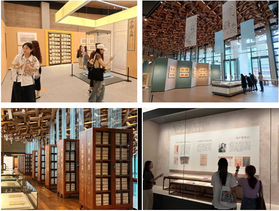走进杭州国家版本馆,如同置身于中国古典山水画中。由龙泉青瓷拼成的一扇扇高十余米的屏扇通过机械控制,每扇门既可以呈折扇式,也可以排成一面平铺的屏风,如同宋代画屏。党员们在支部书记黄丽萍的带领下依次参观了“文献之邦——江南版本文化概览”、“版印江南——中国版画版刻版本大展”、“数字馆”等展区,既有一种历史深度的穿越感,也有一种地理广度的跳跃感。大家一路前行一路感叹,版本馆真是“赓续中华文脉、坚定文化自信、展示大国形象、推动文明对话”的精品传世工程,值得“打卡”。