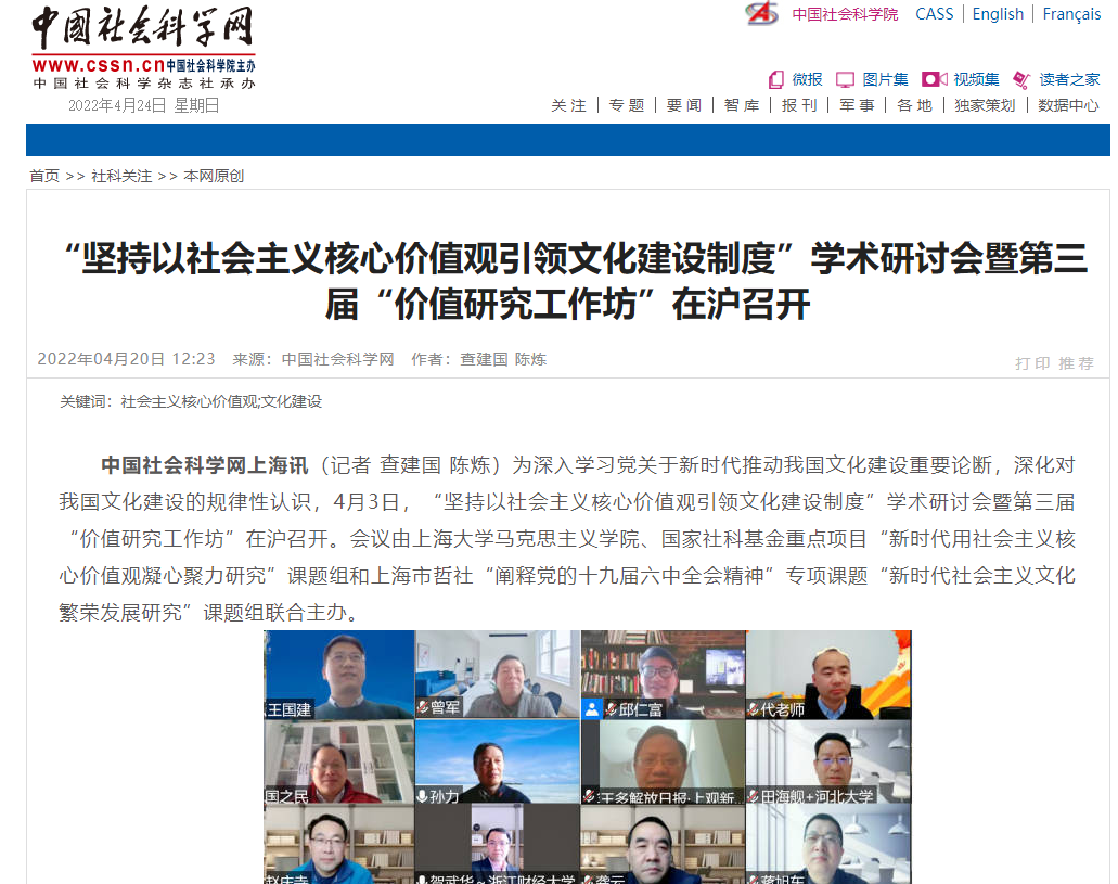 我院贺武华教授参加“坚持以社会主义核心价值观引领文化建设制度”学术研讨会暨第三届“价值研究工作坊”
