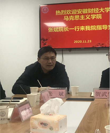 为加强财经类高校的发展与协作,共同提升财经类高校思想政治理论课的教学水平与教学效果,11月23日下午,安徽财经大学伟德国际victor1946张斌院长一行到我院考察交流并举行座谈。双方教研室主任、支部书记、研究机构负责以及办公室主任等各工种领域代表参加座谈。会议由贺武华院长主持。