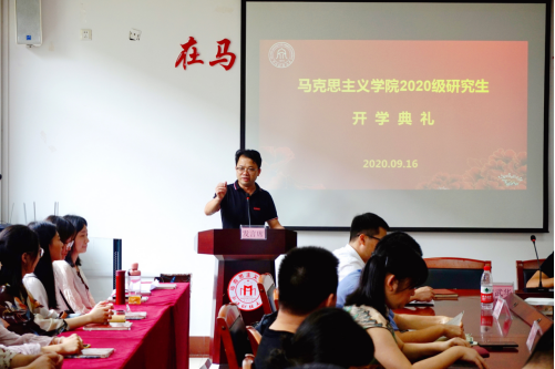 “财大不如清华,没有清华园,但有菜园子,有才华的你在此盛开;财大不如武大,没有情人坡,但有北坡,八百标兵奔北坡;财大不如北大,没有未名湖,但有鹅湖,问道辨思法古人。”院长、党委书记贺武华教授以幽默风趣的语言、轻松活跃的语调活跃了会议氛围,他代表学院对2020级新生的到来表示衷心的祝贺和欢迎,表示同学们进入研究生阶段就意味着进入了求知深造的阶段,同时寄语新生要“做人、做事、做学问,立德、立言、力行,成才、成功、成人”,并勉励新生在研究生学习生涯中不断不断汲取新的知识、提高专业修养,争取早日成为社会所需人才!