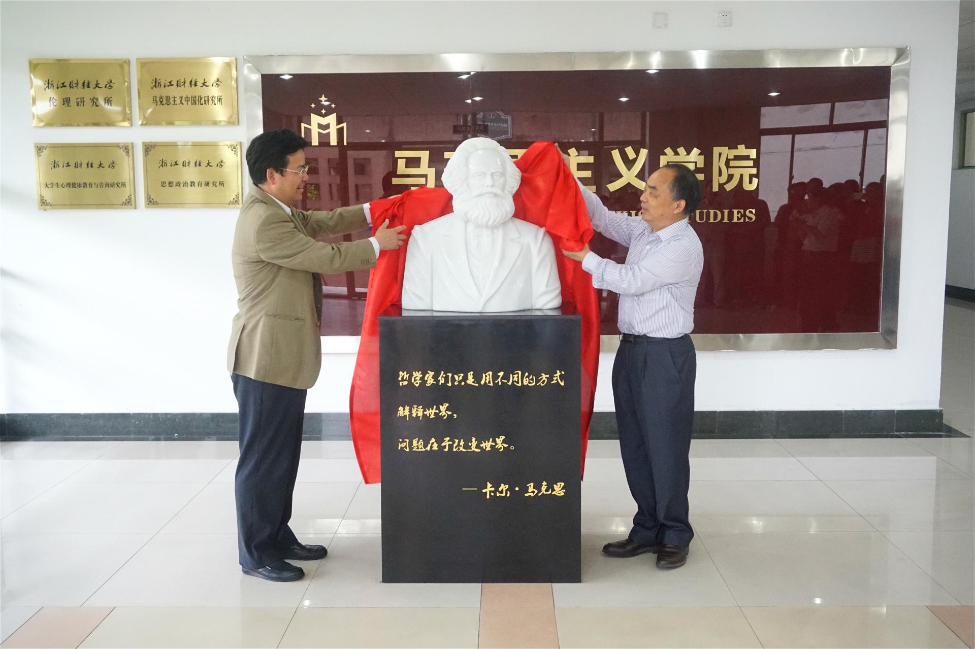 落成典礼由伟德国际victor1946院长华正学教授主持。中国社会科学院马克思主义研究院党委书记、院长邓纯东研究员、伟德国际1946bv励如孟副校长共同为马克思雕像揭幕。