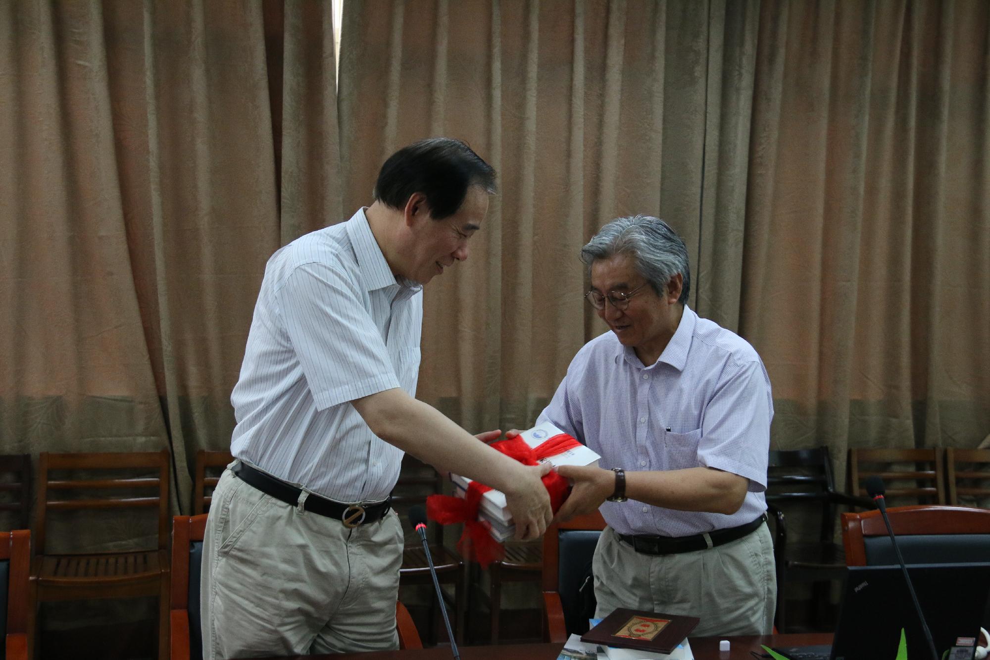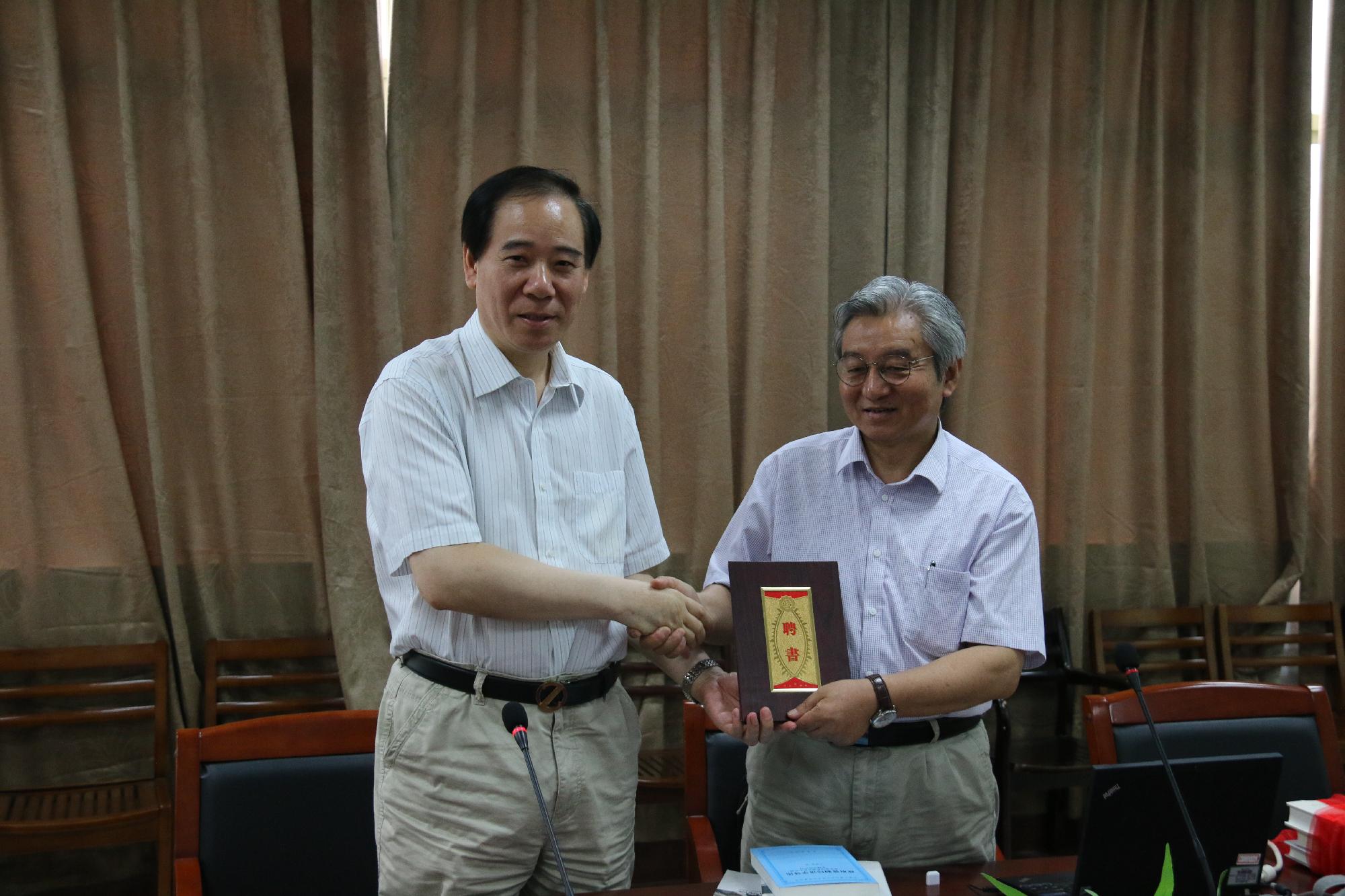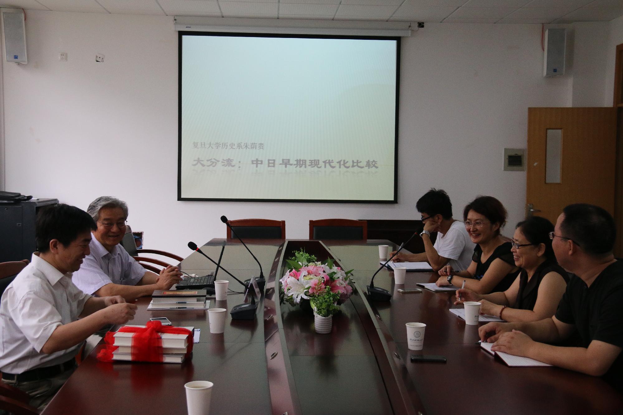 7月1日上午,复旦大学博士生导师朱荫贵教授应邀为我部政府管制思想史课题组的全体老师作了题为“大分流:中日早期现代化比较”的学术报告。报告开始前,王俊豪校长代表学校向朱荫贵教授颁发了伟德国际1946bv兼职教授聘书,朱荫贵教授也向我校捐赠了其部分研究著作。