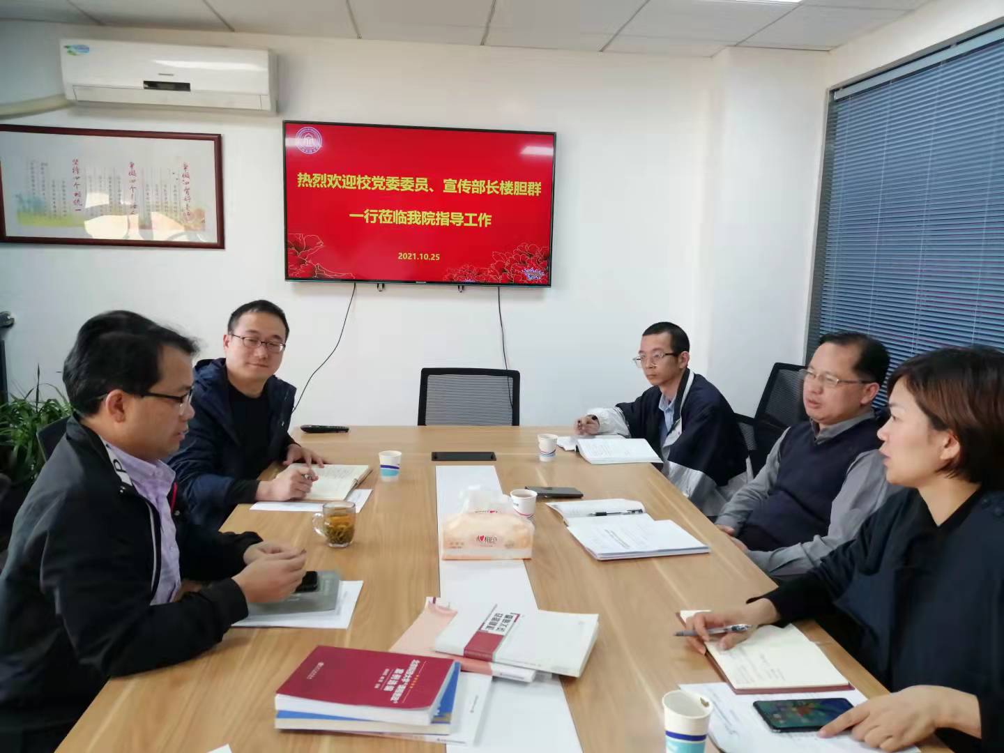 10月25日下午,学校党委委员、宣传部长楼胆群,宣传部副部长毛鸽等一行来到我院调研指导“三全育人”研究专项工作。