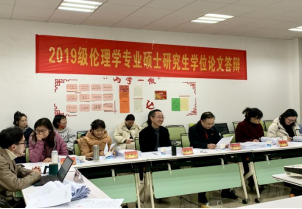论文答辩是一个能让学生得以完善知识框、交流并传达信息的过程,不仅学生可以从答辩评委导师的指导意见中获得宝贵的建议,同时答辩评委也能围绕不同领域或角度的学生毕业论文进行意见的交流与整合从而进一步扩充自己的学术视野。至此,2019级伦理学论文答辩工作圆满结束。
