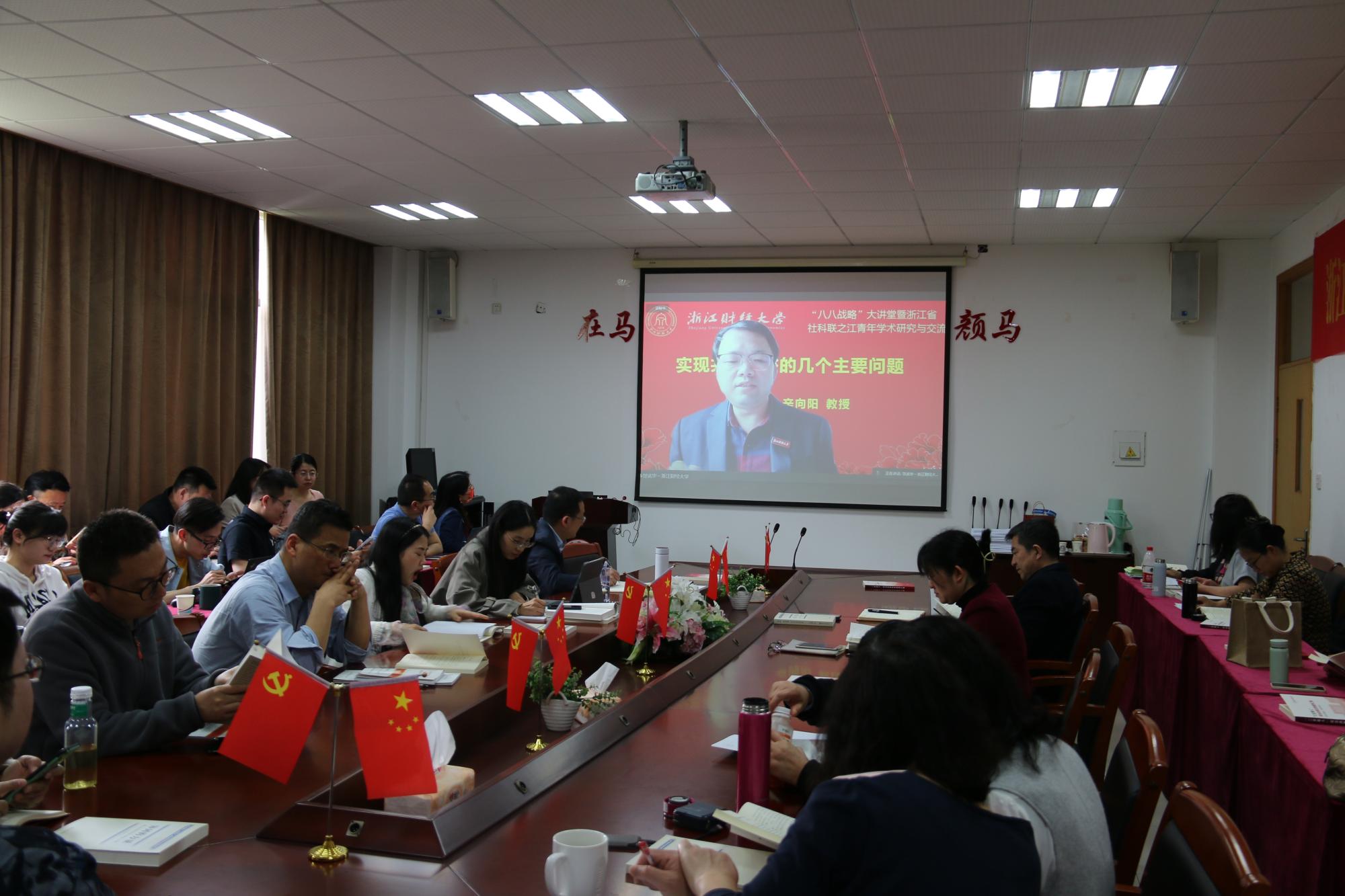 4月19日下午,中国社会科学院马克思主义研究院党委书记、副院长、中国社科院大学伟德国际victor1946院长辛向阳教授应邀为我院师生作题为《关于共同富裕的四个前沿问题》的学术报告,报告采用“线上+线下”相结合的方式进行,主会场设在我院211会议室,由我院党委书记、院长贺武华教授主持,我院全体师生参加。线上通过腾讯会议平台开放同步直播,我校浙江省“八八战略”研究院等省内外500多名专家学者慕名与会。