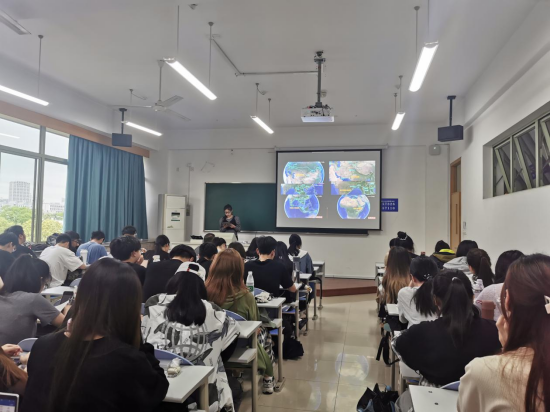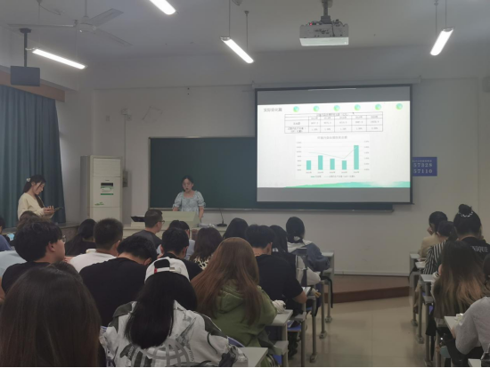 4月26日上午第一节课,在C教学楼215教室,一堂《毛泽东思想和中国特色社会主义理论体系概论》课正在进行。只见何明亿、胡安怡同学落落大方地走上讲台,认真地讲述起她们对这十年的观察和感受。在“我们这十年——中国变得越来越美丽”的讲述中,结合十年来中国生态文明建设的政策变化和实践效果,他们认为,这十年,给她们最大的感受就是中国的水变清了、山变绿了、空气变得更清新了、中国变得越来越美丽了。充满激情的讲述,辅以生动鲜活的案例,引起在座师生的广泛好评。