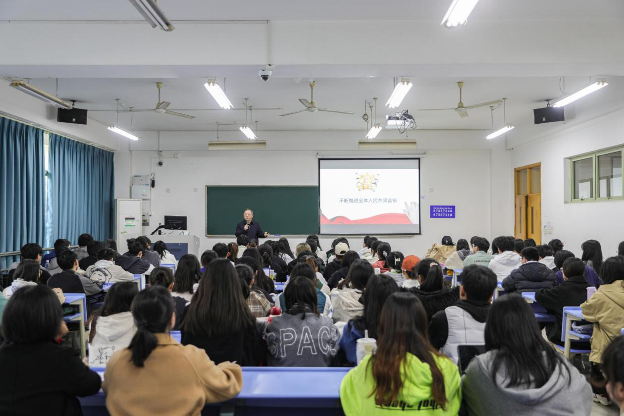 李金昌分别以“不断推进全体人民共同富裕”和“站在历史正确的一边,共创祖国统一伟业”两个主题为数据科学学院学生展开教学。李金昌结合学校八八战略研究院在义乌进行的共同富裕调研,讲授了共同富裕的本质、内涵及指标,还结合中国现实国情,深入分析了推进祖国统一的必要性。李金昌勉励同学们坚定理想信念,树立远大理想;掌握过硬本领,学好专业知识;善从小事做起,锤炼意志品质,为将来投身社会做好准备。