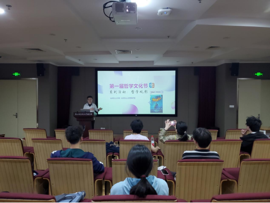 4月25日,由伟德国际victor1946马克思主义基本原理教研室主办的第一届哲学文化节系列活动在图书馆多功能活动厅继续进行,第二场活动的主题是“哲学观影”,由王聪老师主持观看《蝙蝠侠·黑暗骑士》,吸引了各学院师生二十余人前来观看。