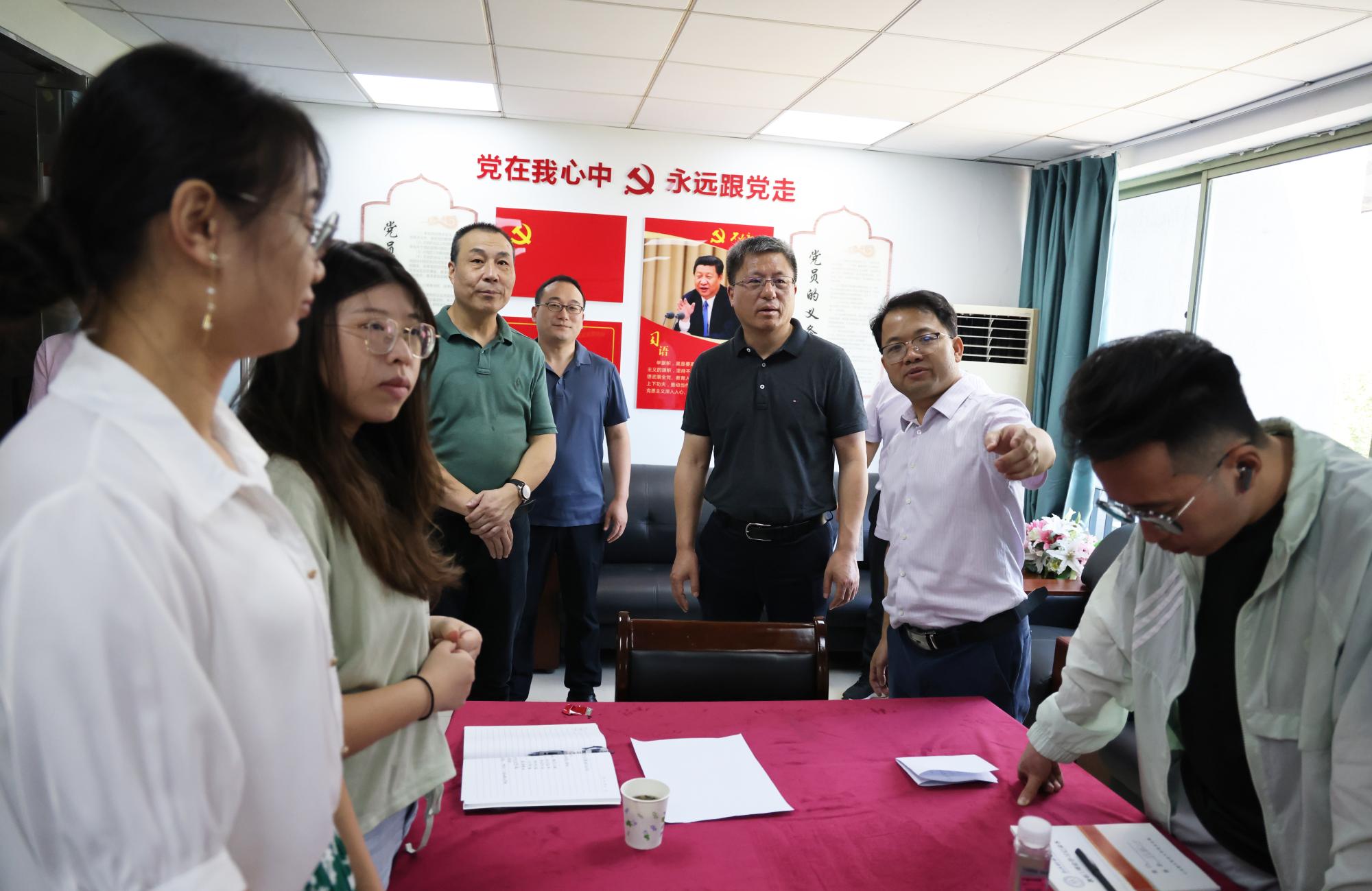校领导一行参观了走廊的文化墙,李金昌书记对我院的走廊文化建设予以了充分肯定。随后他们走进会议室,与正在开备课会的马原教研室教师进行了亲切的交谈,了解新学期教师们的工作情况,并充分肯定在教师节仍孜孜不倦坚守在工作岗位的老师们,感谢他们为学校教育事业所作的贡献与努力,魏江表示这样的集体备课活动特别好,在讨论中促进教师的教学水平不断精进,教学质量不断提高,这样的活动要及时总结经验,并予以推广。
