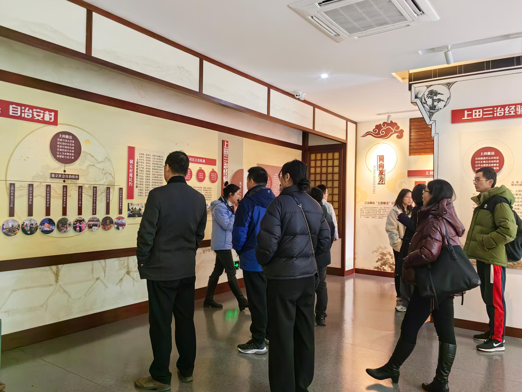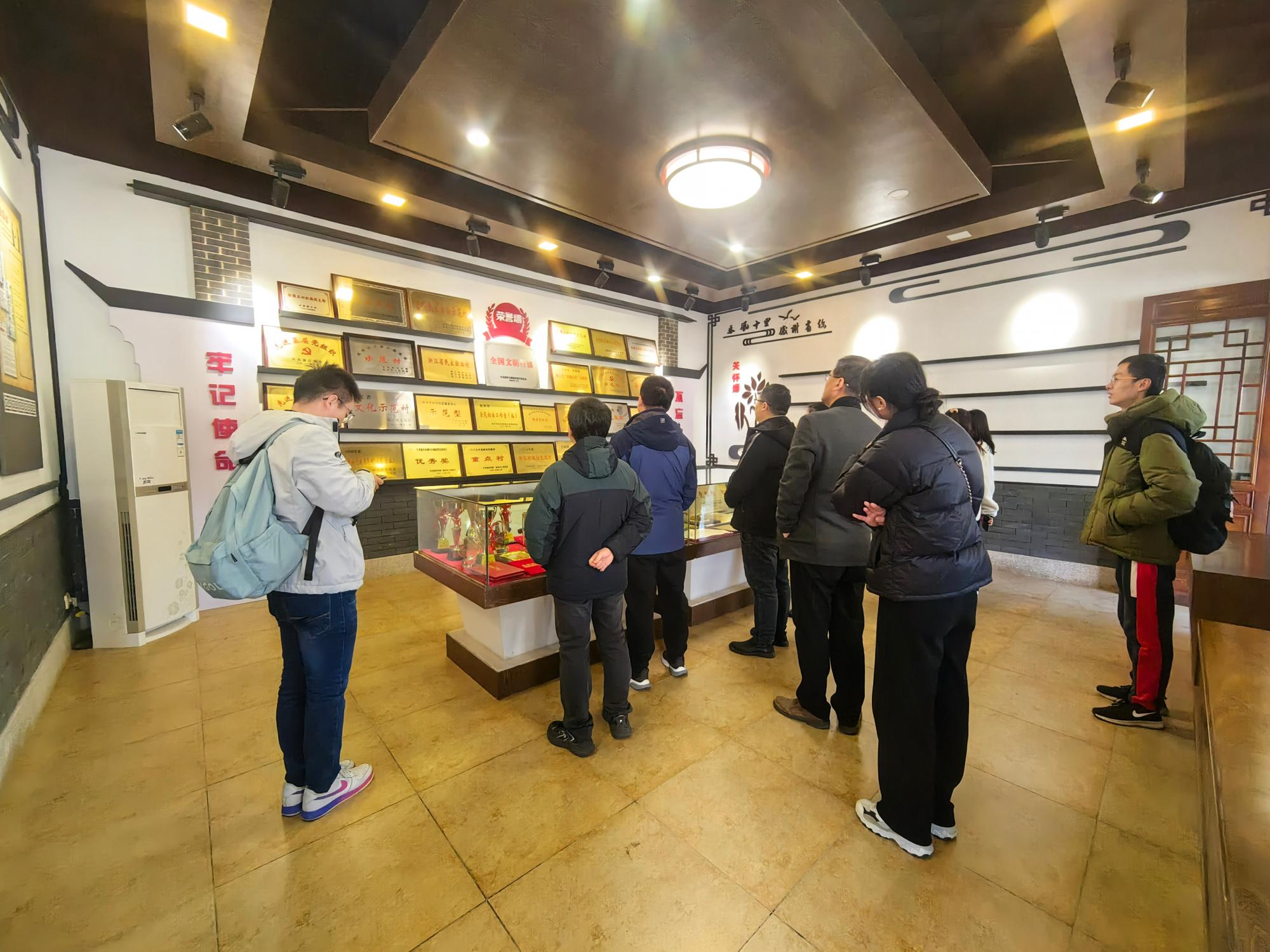 老师们先后参观了以文化广场、乡治馆、文化礼堂、文武馆等为德治载体的文化展区,以及入选浙江省“非遗助力共同富裕”试点地区非遗工坊典型案例的中泰竹笛展示馆,详细调研了当地农产品、手工制品等产业状况进行了详尽的调研。