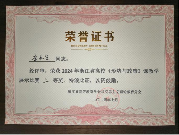 在随后的教学竞赛中,我校金融学院辅导员李文生以“读懂中国式现代化”为题参加展示,与来自各高校的二十位教师同台竞技,并获得了二等奖。