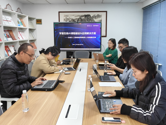 学堂在线工作人员讲解学堂在线AI课程的功能模块、建设方法和课堂实施路径。培训围绕AI教学模型、AI教学应用、知识图谱、AI教学助手等四大应用场景,展示了AI智慧课程如何建、如何用。同时结合具体课程案例及多个应用场景分享了AI技术通过数据分析、智能助手等手段促进学生个性化学习的优势。现场演示环节,更为教师们带来了智慧教学平台的深度体验,直观展示了AI技术如何助力教师高效完成课程建设、优化教学流程等。
