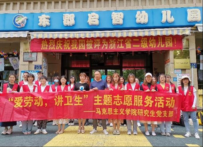 为迎接建党一百周年,践行党史学习教育,我院研究生支部新发展党员在老党员的带领下,于2021年5月27日赴杭州启智幼儿园开展党员进学校服务育新苗“爱劳动、讲卫生”的志愿者服务活动,以实际行动践行初心使命,争做示范表率。