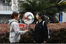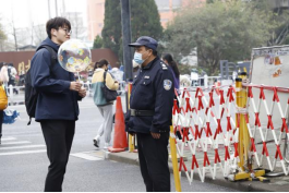 3月21日下午15点,各位同学拿起手中的气球,向学生以及保安叔叔展示绘画成果,生动形象地讲述了党的百年历史和对祖国的热爱。