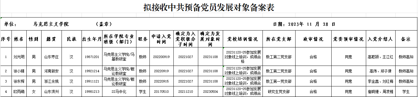 公示时间为2023年11月29日至12月4日,如有异议,请于公示期内向所在支部、伟德国际victor1946党委或校党委组织部反映。