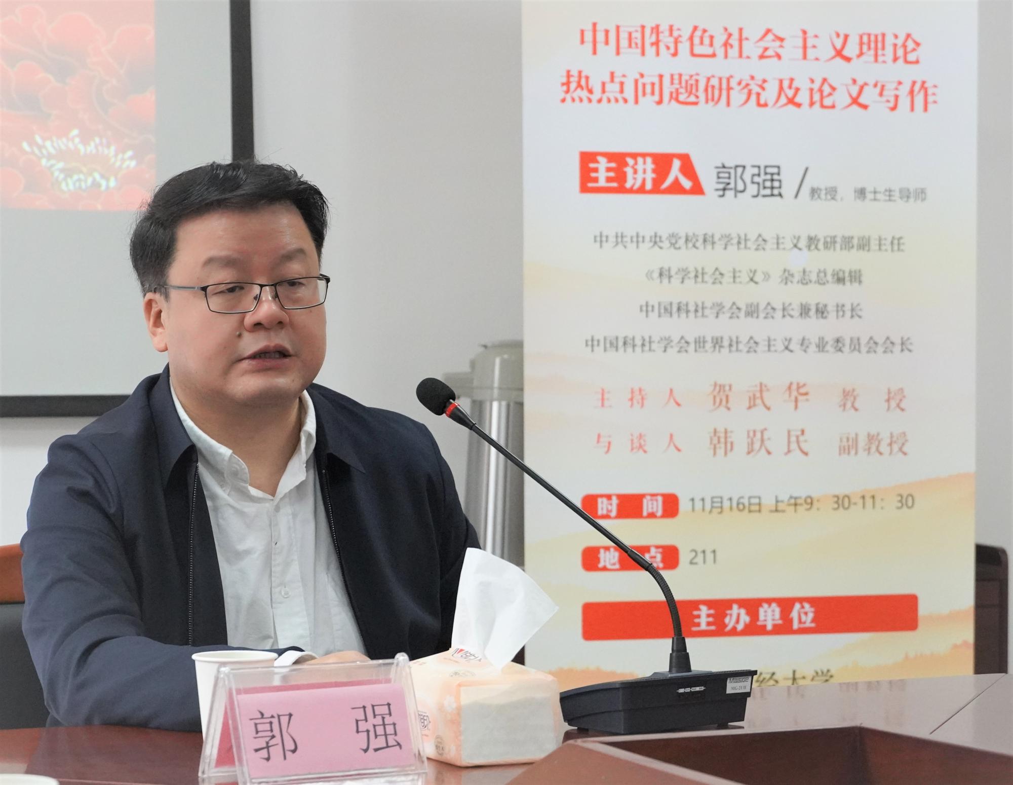 11月16日上午,《科学社会主义》杂志总编辑,中共中央党校郭强教授为马克思主义学院师生作题为《中国特色社会主义理论热点问题研究及论文写作》的学术论坛。此次论坛在伟德国际victor1946211会议室举行,由我院党委书记、院长贺武华主持,学院无课师生参加。