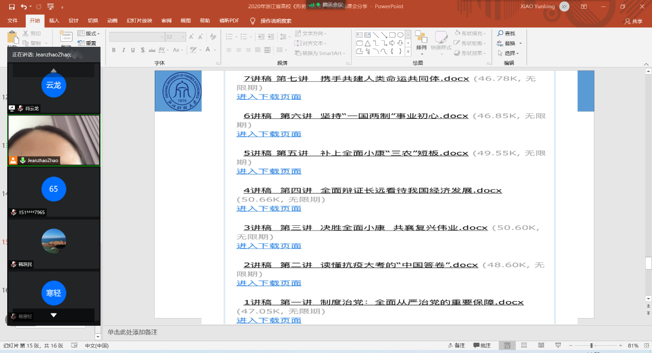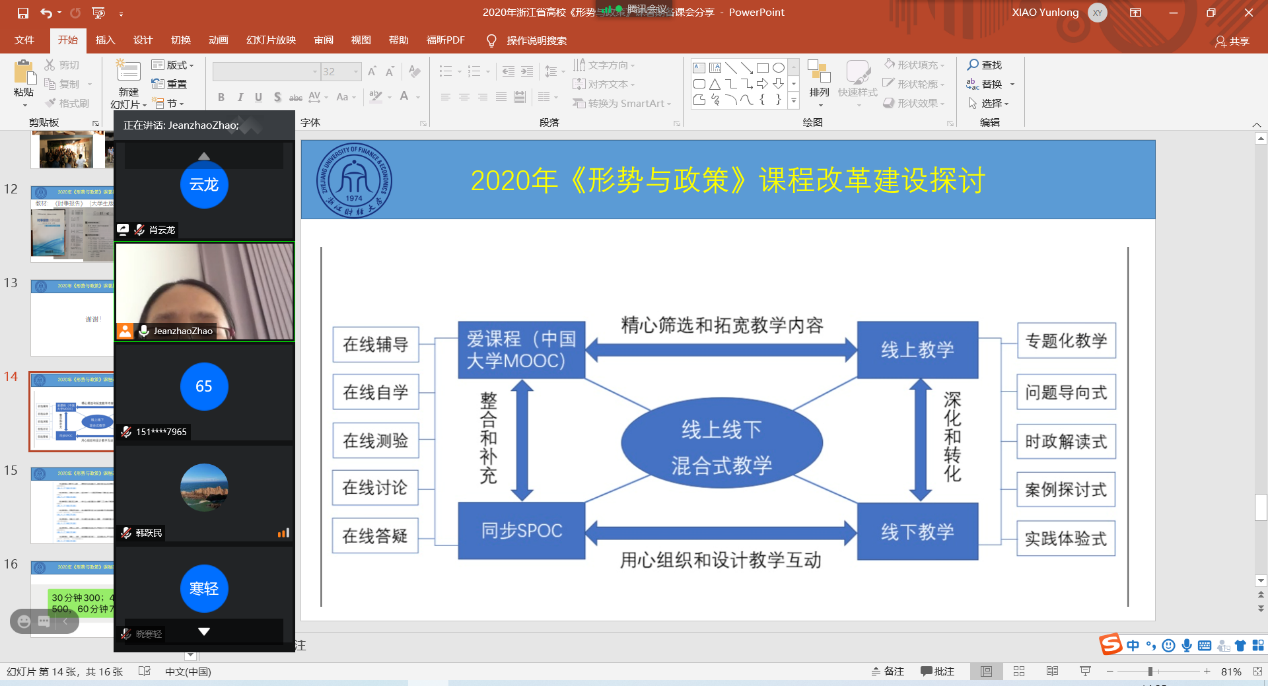 此次线上会议持续了一个多小时,教学团队对课程建设纷纷献言献策,为新学期的教学工作做好了充分的准备,对即将授课的新进教师提供了一个很好的学习机会,大家受益匪浅。