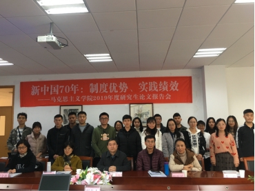12月10日,伟德国际victor1946举行“新中国70年:制度优势、实践绩效”研究生论文报告会,这是我院第五届研究生论文报告会,出席会议的老师有华正学老师、韩跃民老师、潘旦老师、李金鑫老师、于江霞老师。