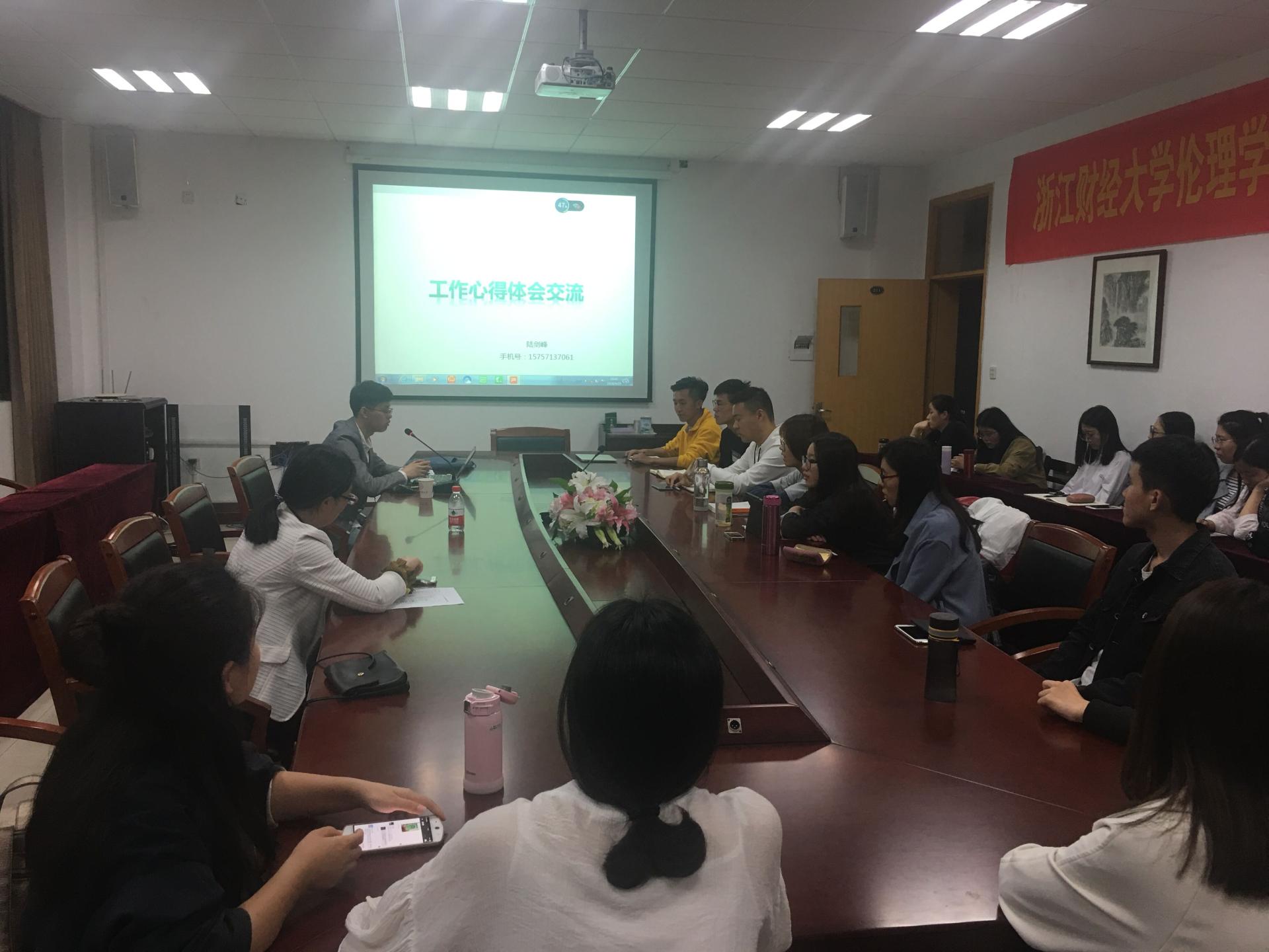 4月25日晚,应伟德国际victor1946邀请,2012级优秀毕业生陆剑峰,在3-211会议室做主题为“分享就业经验 传授工作心得”的座谈会。伟德国际victor1946院长华正学教授主持会议,辅导员黄丽萍老师出席会议,在校研究生参加了座谈会。
