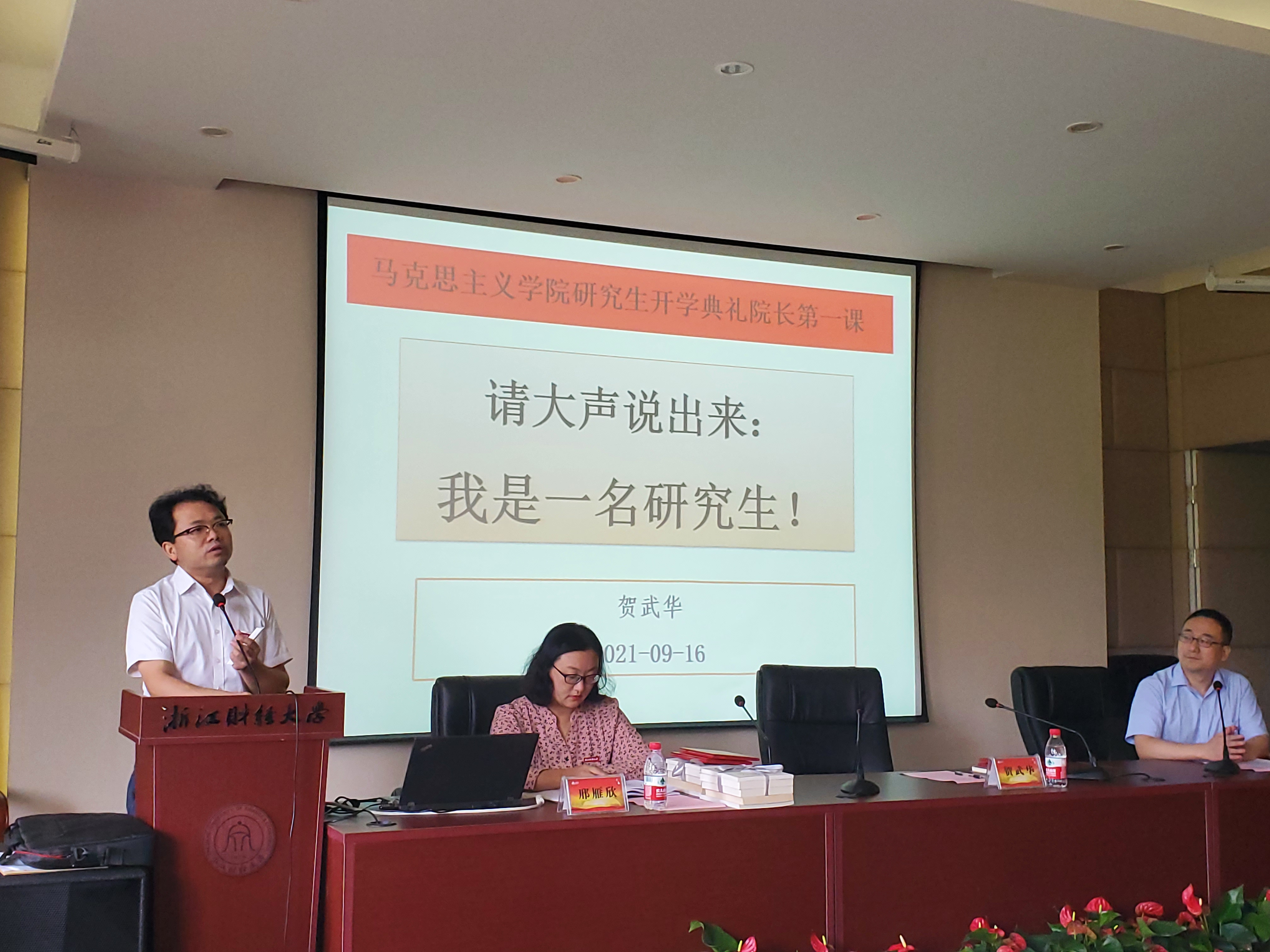 伟德国际victor1946党委书记、院长贺武华给21级研究生上了新生第一课。他从理想信念、马院精神和党史教育等方面对新生进行了思想政治教育,并勉励学生们在研究生新阶段,要树立远大坚定的理想信念和家国情怀,脚踏实地,学以致用。他对新同学们提出了三点要求:一要端正学习的态度、学会学习的方法和提高学习的自主性;二要在研究生阶段合理分配时间,早日明确目标;三要主动探索、去学习。