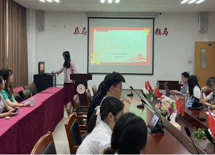 悠悠百载,学史鉴今,接力前行。我院团支部高度重视对团员青年的党史学习教育工作,于5月24日下午在三号楼211会议室开展“学党史,悟担当”主题团日活动。学院全体团员参加本次活动,活动由团支部宣传委员万雨吟主持。