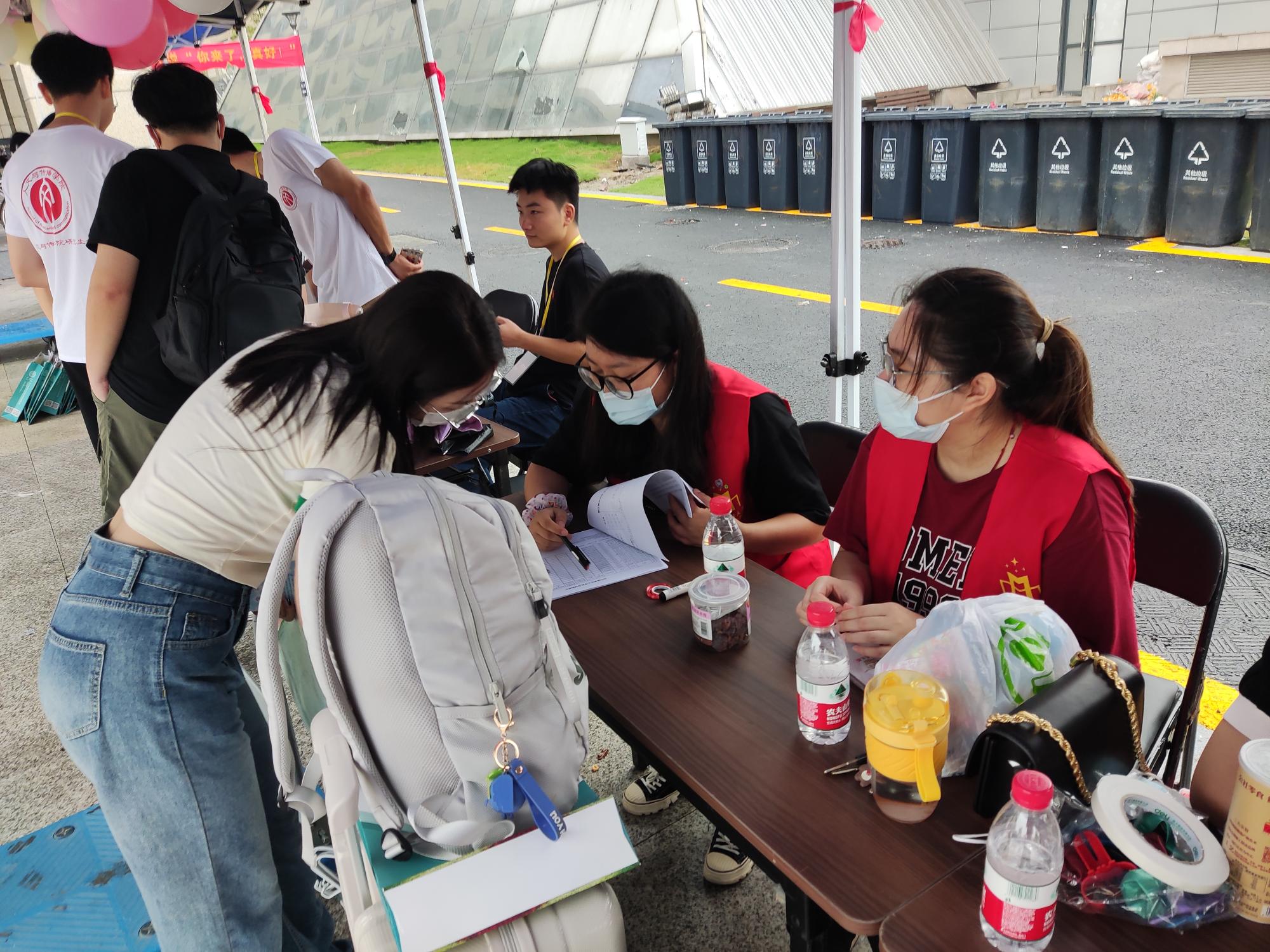 迎新工作有条不紊地进行着:学院志愿者们接待新生、查验材料、搬运行李、讲解入学相关事项和之后的日程安排等。在大家的共同努力下,2022级17位研究生顺利完成了报到。