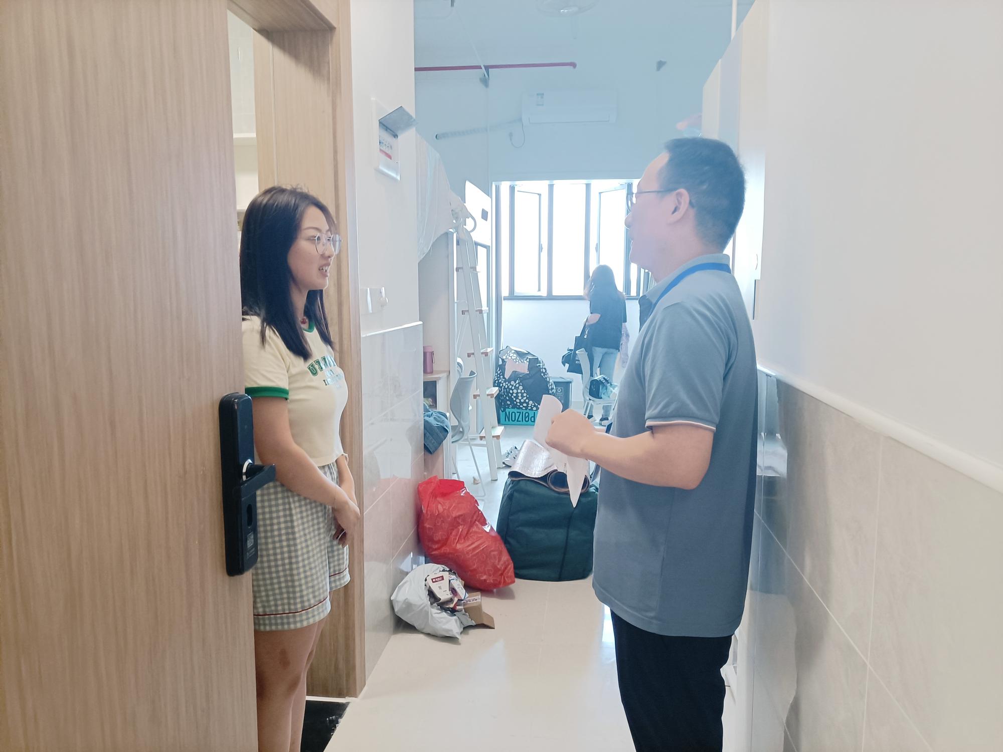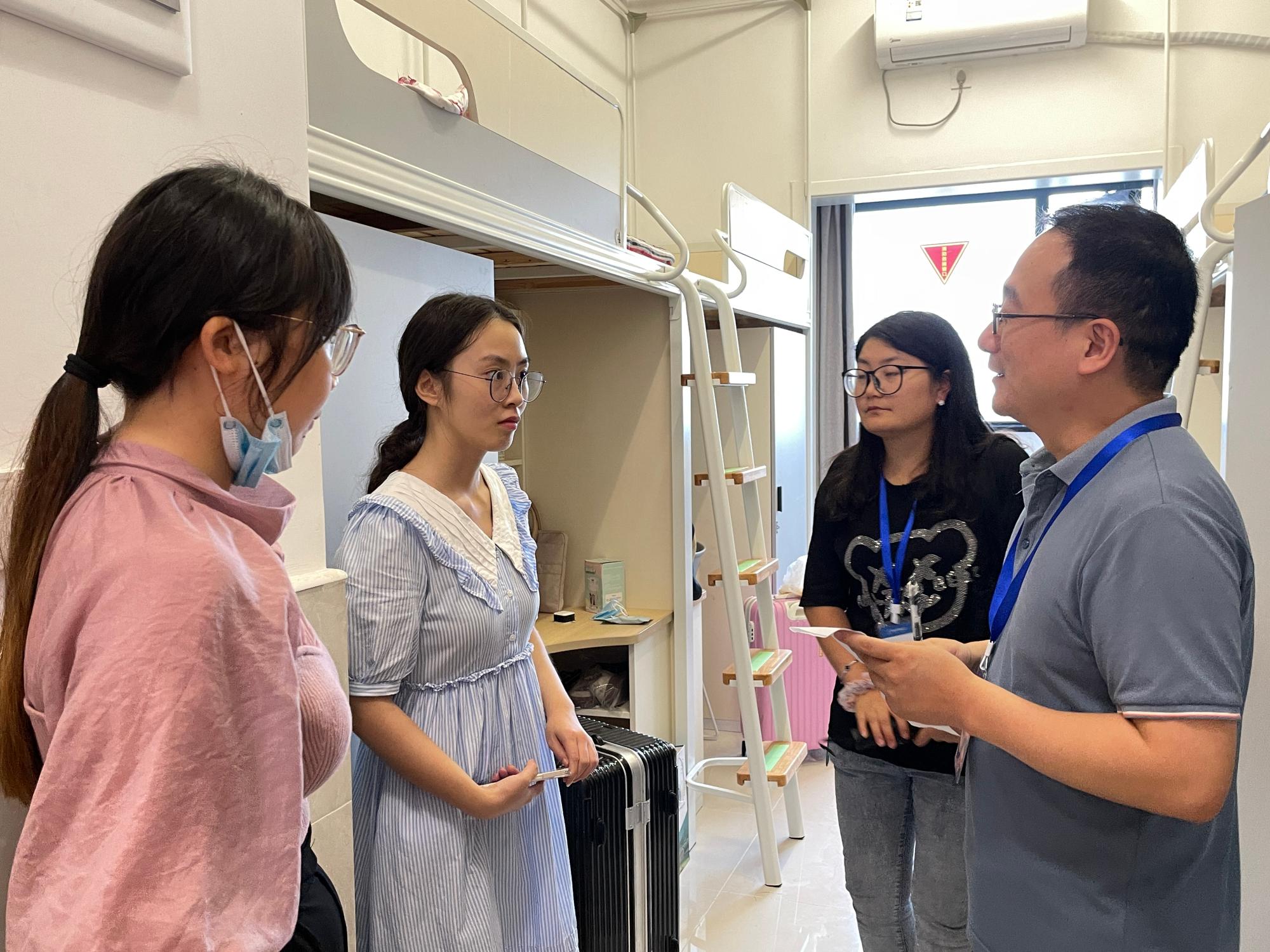 下午3点半,学院党委副书记刘向前、辅导员王瑜老师走访了新生寝室,了解学生报道和住宿情况。期间,老师与新生们亲切交流,解决遇到的困惑和问题,并鼓励新生在研究生阶段努力学习,在财大马院这个平台实现自己的价值,实现自己的梦想!