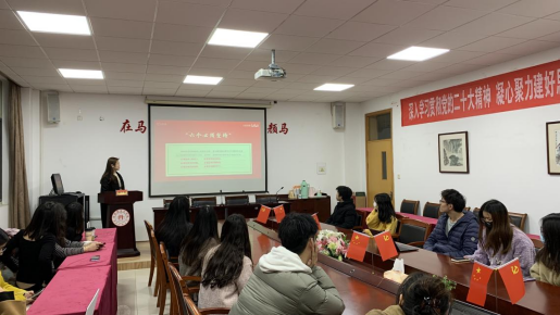 会议开始,欧雨萌同学通过播放视频,带领同学们回顾了党的二十大重要精神,全方位学习解读党的二十大精神的重要意义和丰富内涵。