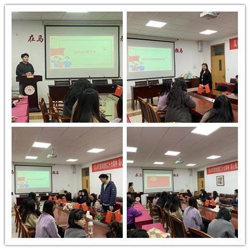 活动环节一:会议传达学习了中国共产党第二十次全国代表大会精神、习近平总书记在庆祝中国共产主义青年团成立一百周年大会上的讲话及新修订的《中国共产党章程》。