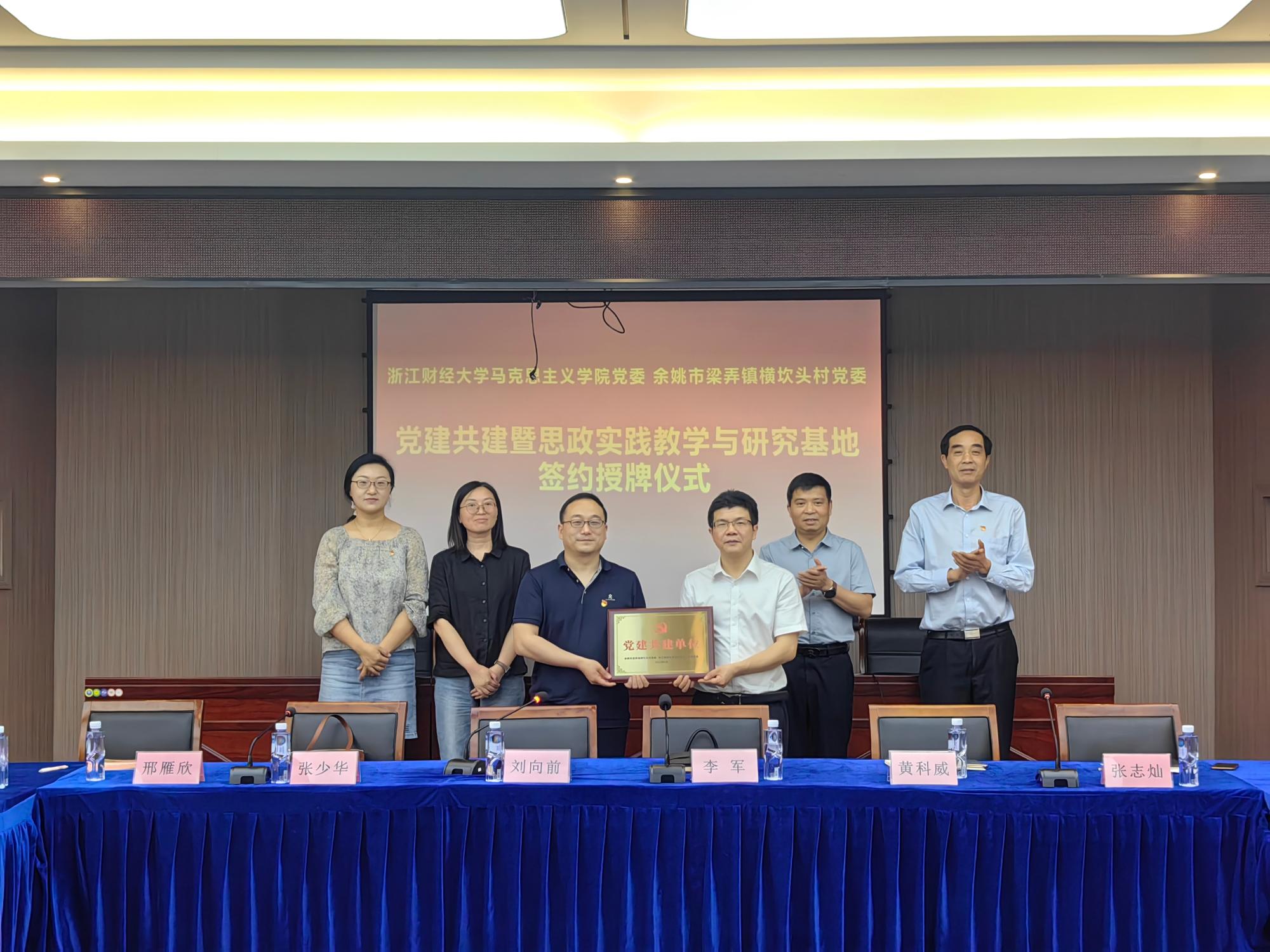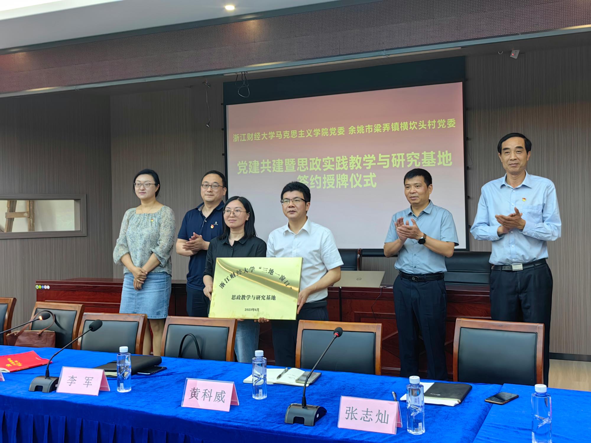 为深入学习习近平新时代中国特色社会主义思想,重温党的光辉历史,传承革命优良传统,6月1日,伟德国际victor1946党委组织师生前往横坎头村、浙东(四明山)抗日根据地旧址开展学习贯彻习近平新时代中国特色社会主义思想主题教育,并与余姚梁弄横坎头村举行党建共建暨思政实践教学与研究基地签约授牌仪式。梁弄镇党委书记李军,横坎头村党委书记、村委会主任黄科威,伟德国际victor1946党委书记刘向前、副院长邢雁欣,教务处副处长张少华等出席签约授牌仪式。